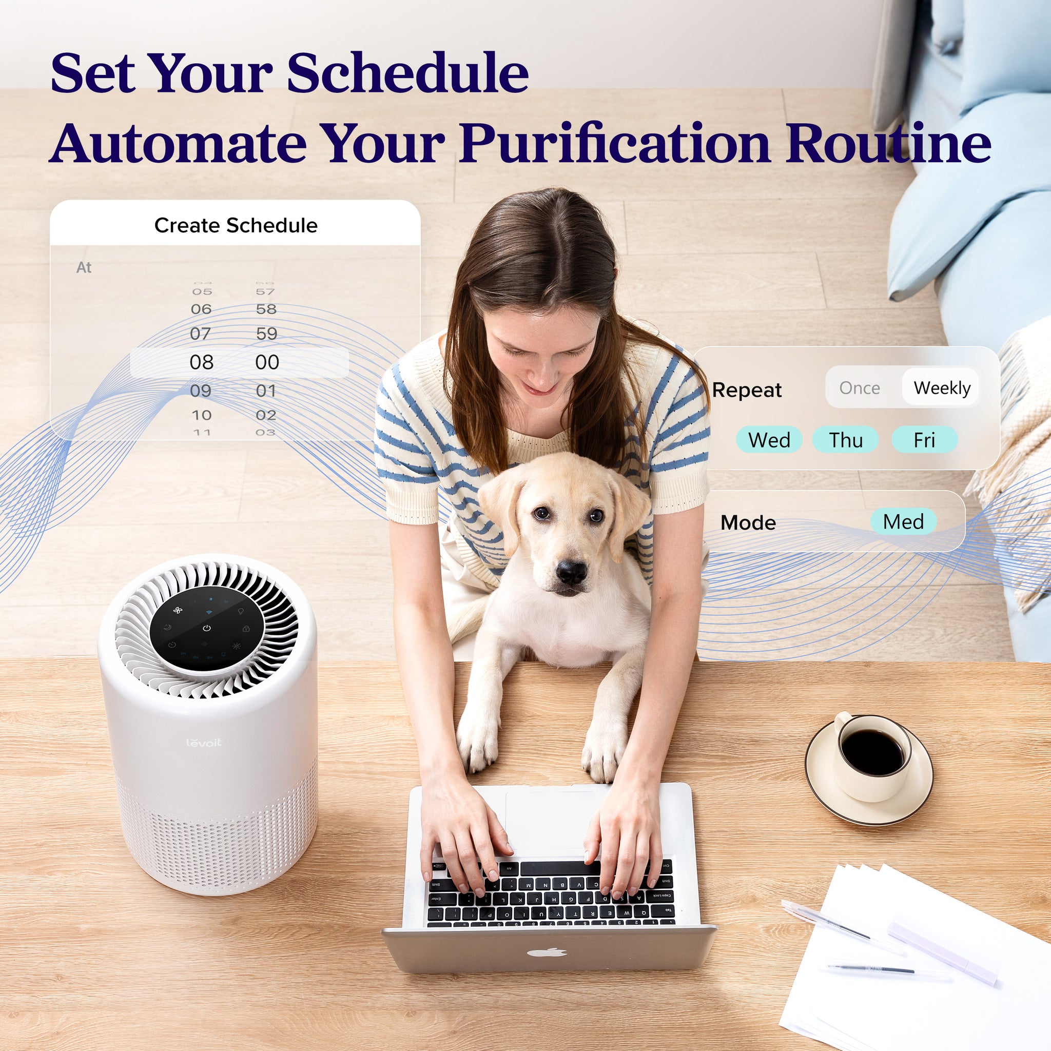 - Clean Air On Schedule: Set 2, 4 or 8 Hour Timers or Customize Schedules The VeSync App.