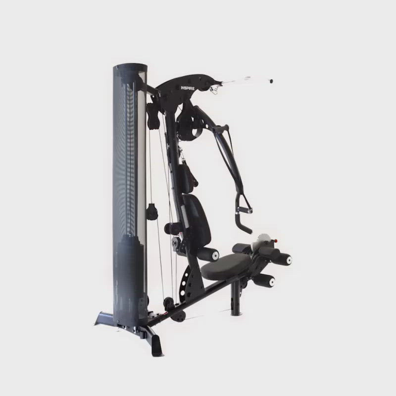 Compact and versatile, the Inspire Fitness M2 Multi Gym allows you to conduct a versatile, full body workout with over 50 different exercises from chest presses, lat pulldowns, shoulder presses, to leg extensions and more. Equipped with fixed press arms, 1 high pulley, 1 mid pulley and 1 low pulley, a seated leg curl and leg extension station, free movement handles, and a 165 lb weight stack, the M2 enables you to target different muscle groups effectively and efficiently. Its ergonomic design helps you maintain comfort and form as you move through different fixed motion exercises while the adjustable seat and back pads provide optimal support throughout your entire workout.