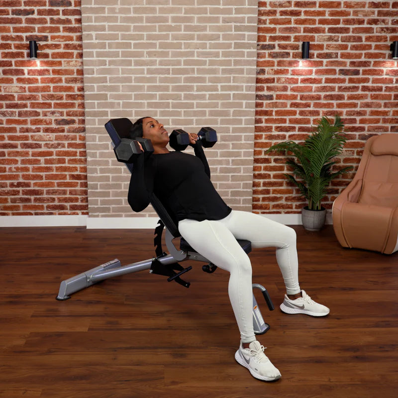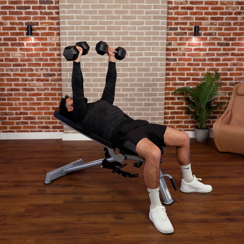A comfortable weight bench with a seven-position backrest and two-position seat, Adonis is perfect for flat, incline and decline exercises.